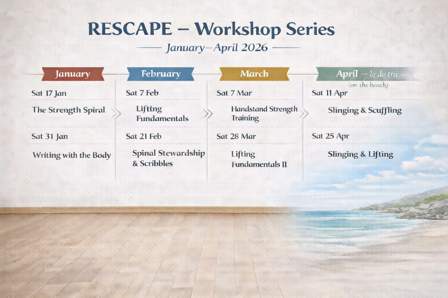 Movement, stillness, writing — these are the ways we come back to ourselves. To feel coherent in body, mind, and community. Strength here is not performance. Play is not frivolity. Writing is not homework. They’re tools to move, think, and become more alive.